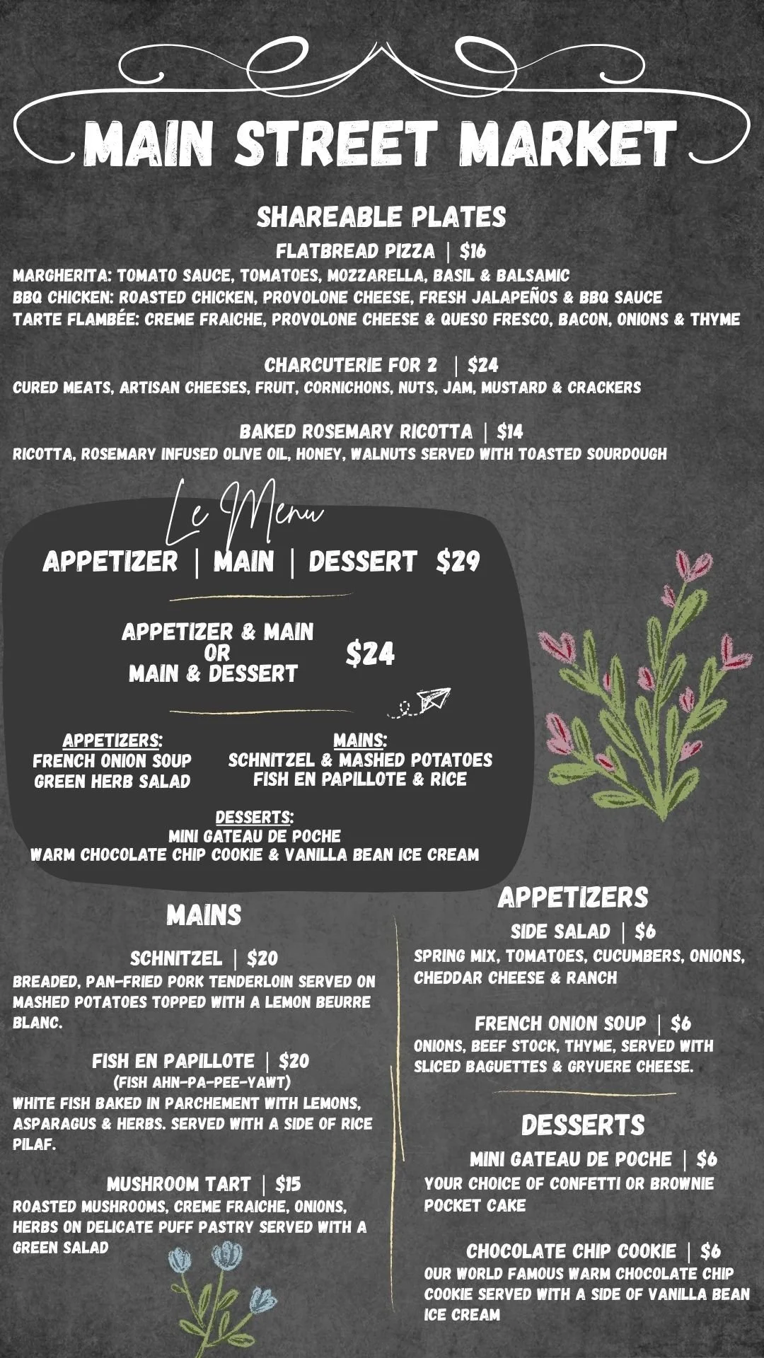 🥖 Plus: small plates, breads, and a few of your market favorites.