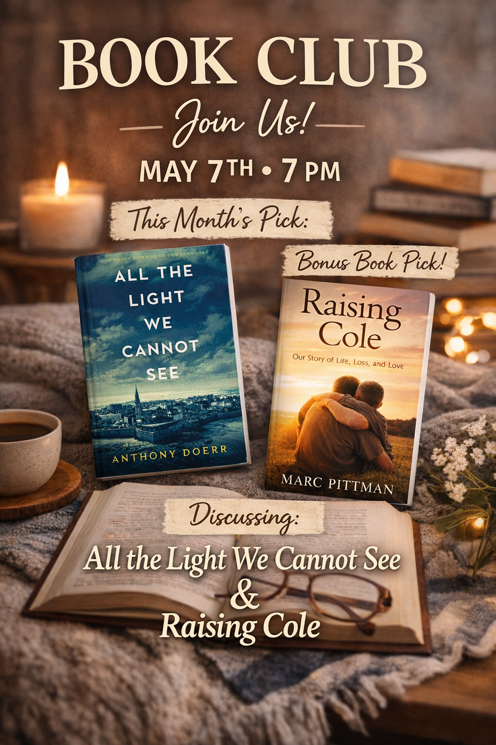 Our May book club will feature two thoughtful and conversation-worthy reads. Whether you’ve read one or both, this is a space to slow down, connect, and enjoy a meaningful discussion together.